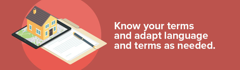 1. Know your terms and adapt language and terms as needed. Take note that the standard language of a contract may vary in different situations, and real estate laws vary between states--which means standard forms are not the same in every location. Given that condition, you can go over the agreement, check for changes, and adjust accordingly.