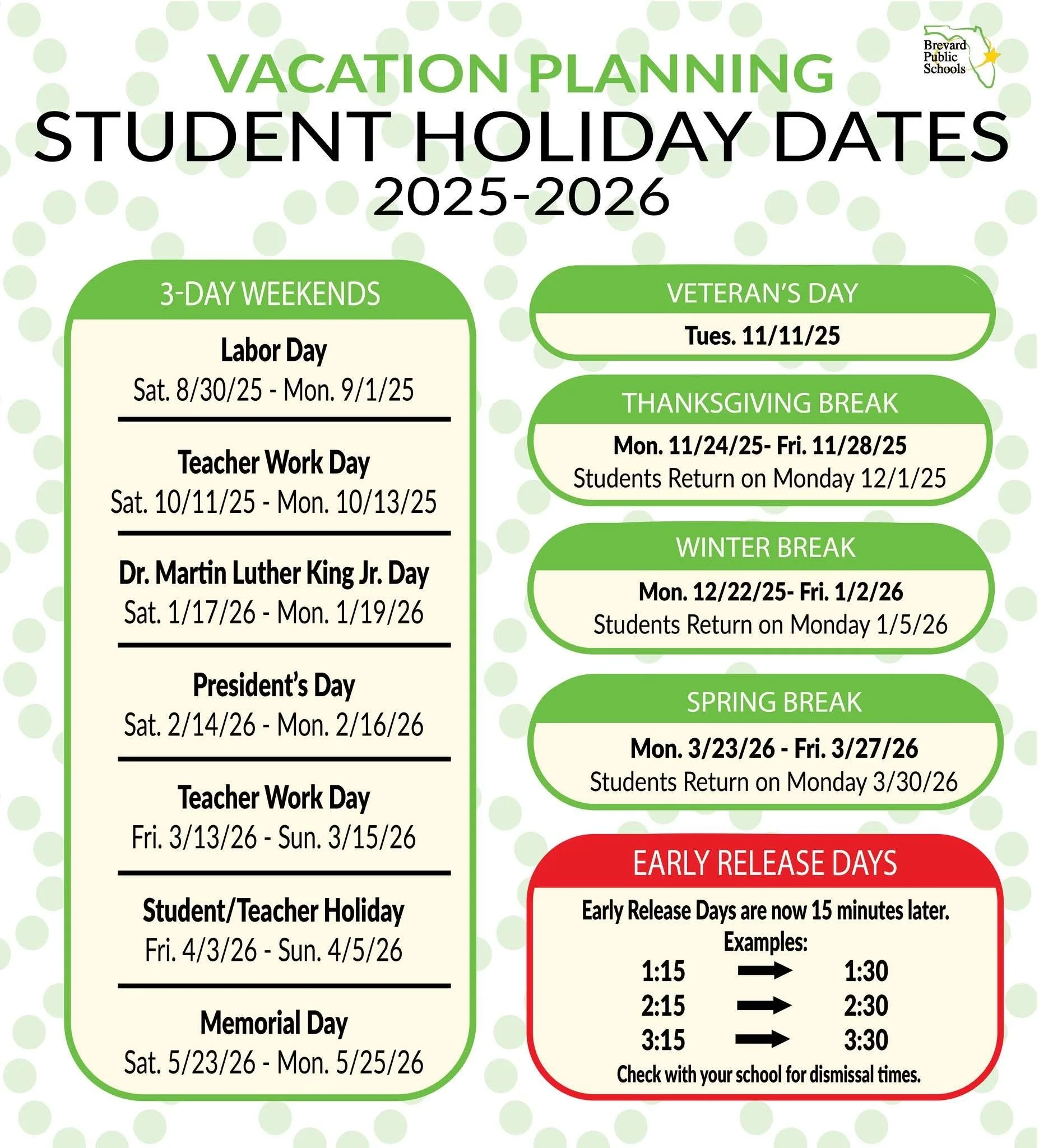 Here is the Calendar for Brevard County School Year for 2025 - 2026